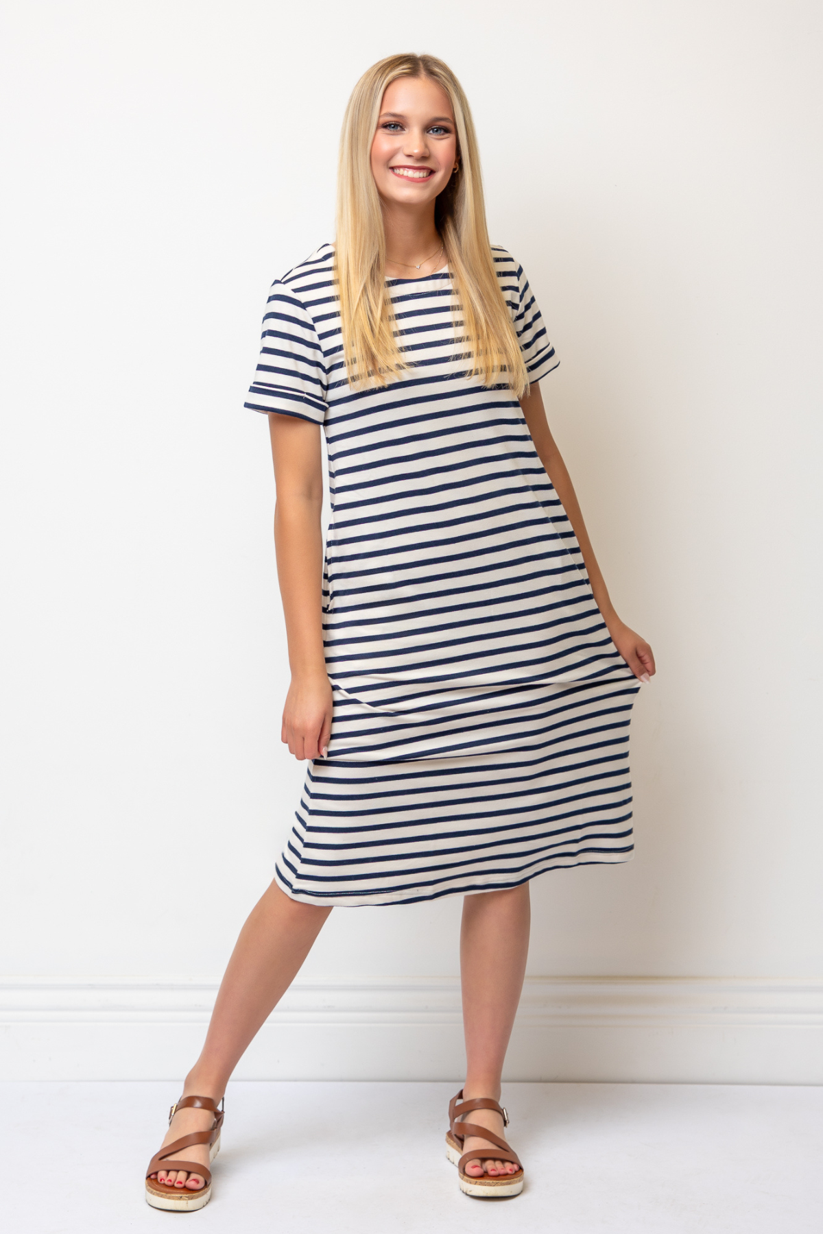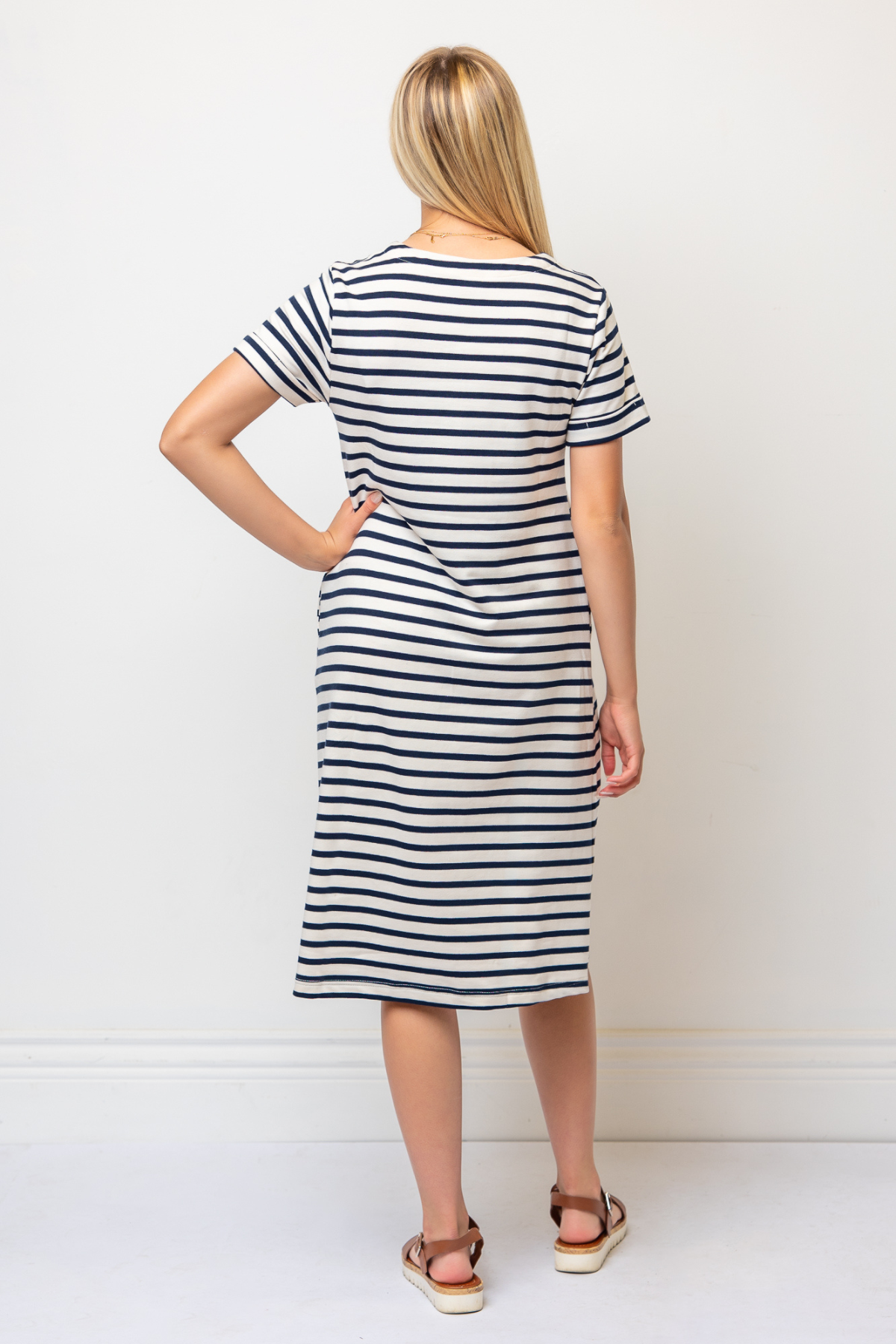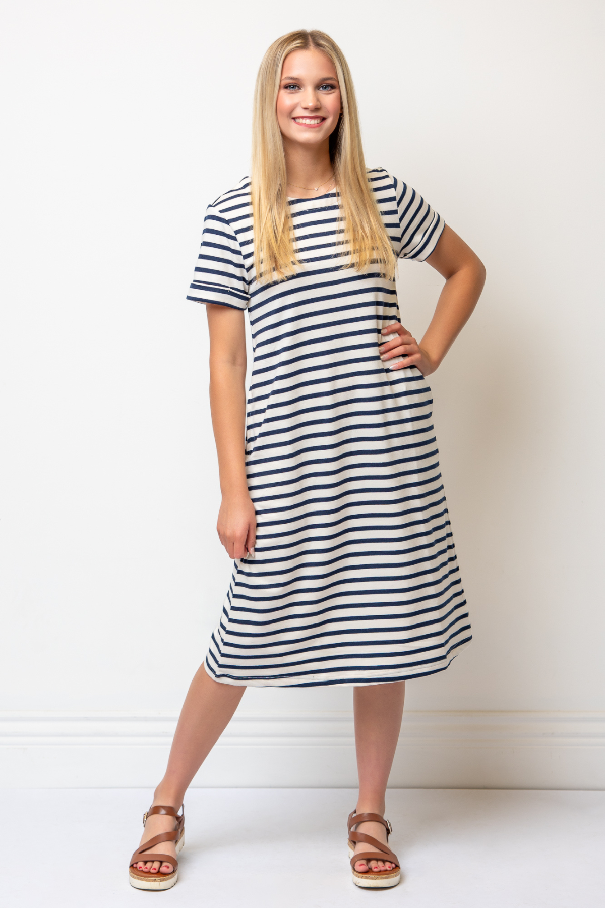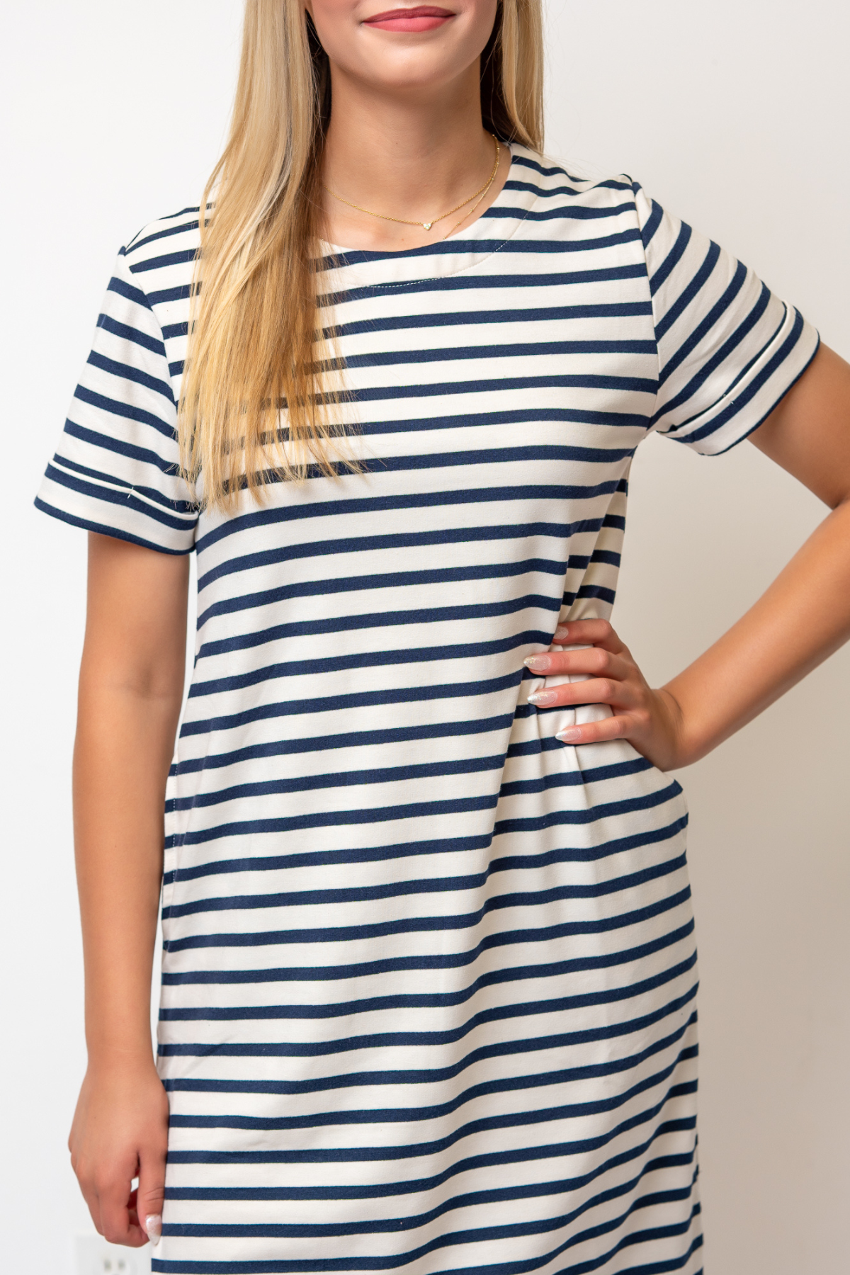 Say bonjour to effortless style with the Celine Dress, a perfect blend of understated French chic and classic comfort. This dress features a clean continuous stripe neckline, tailored shoulders, and a subtle A-line silhouette, offering a refined yet relaxed look. The short cuffed sleeves and side pockets add practicality without compromising on style. Designed to be your go-to outfit, whether you’re running errands or enjoying a leisurely day out, the Celine Dress is all about versatility and timeless appeal.
