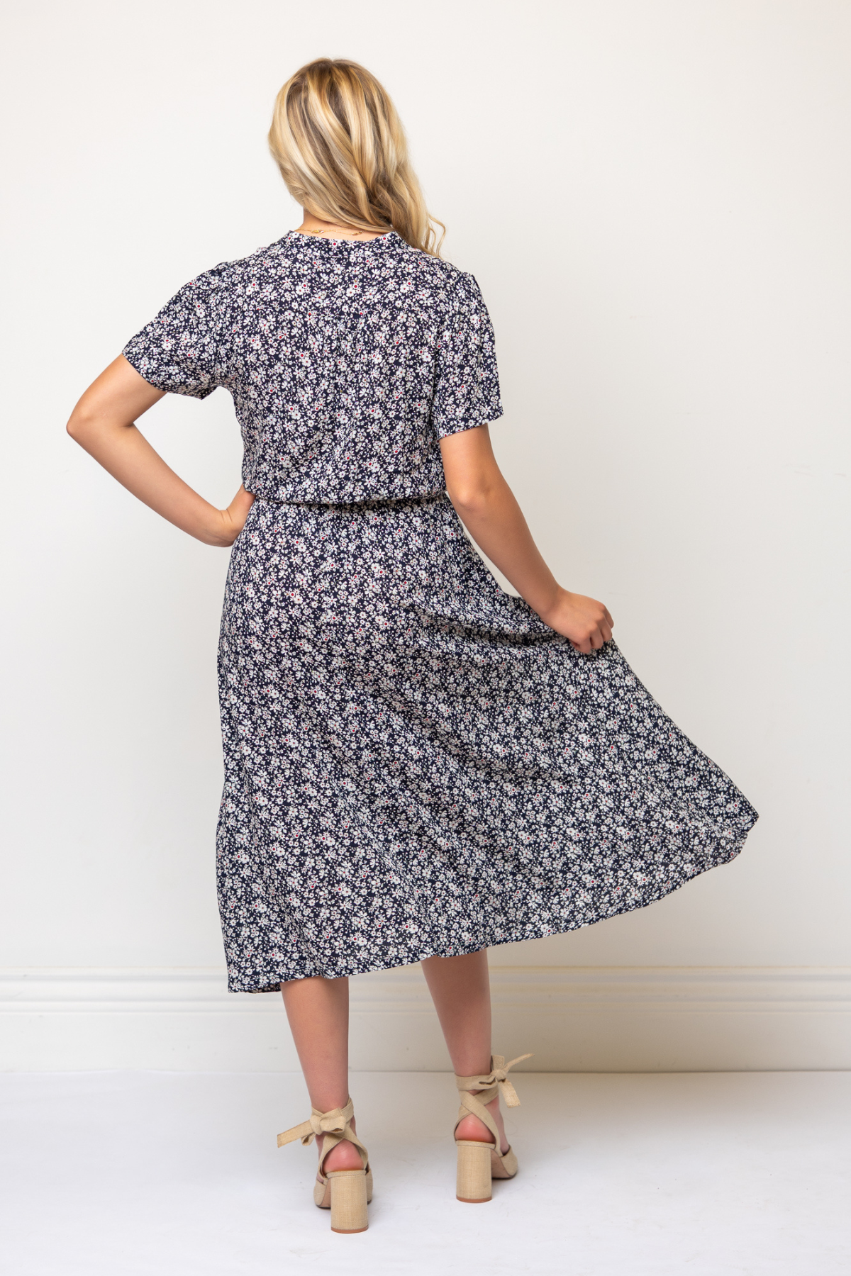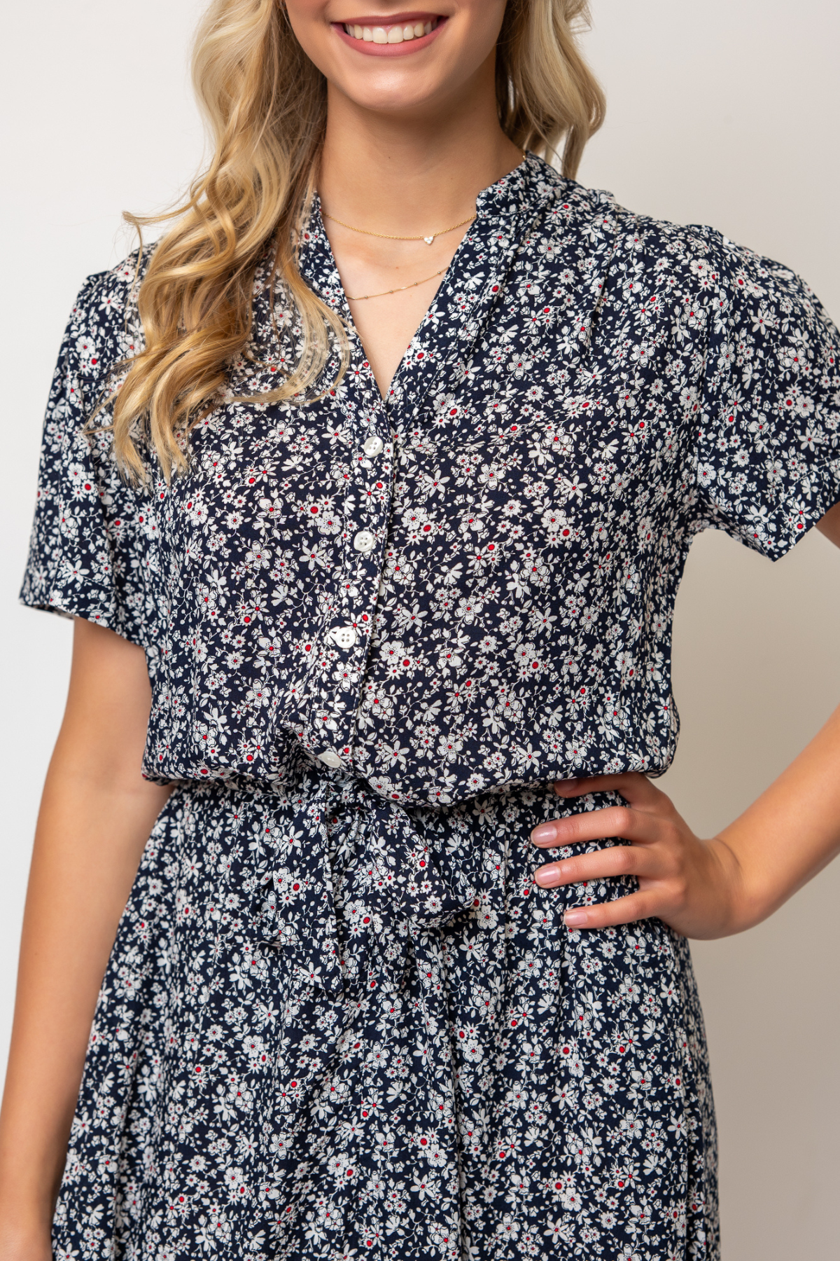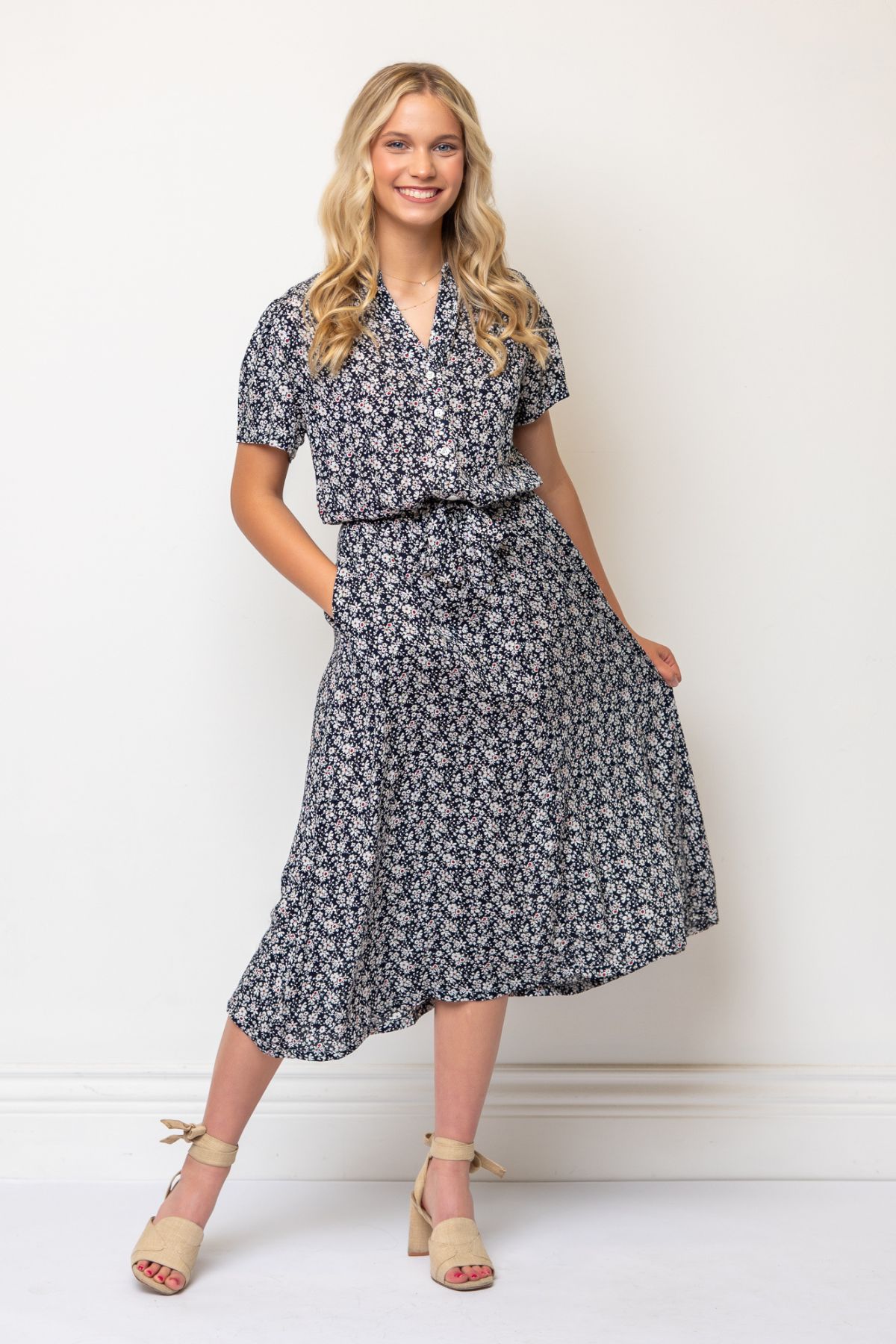 Zelie Shirt Dress in Dark Navy Ditsy Floral