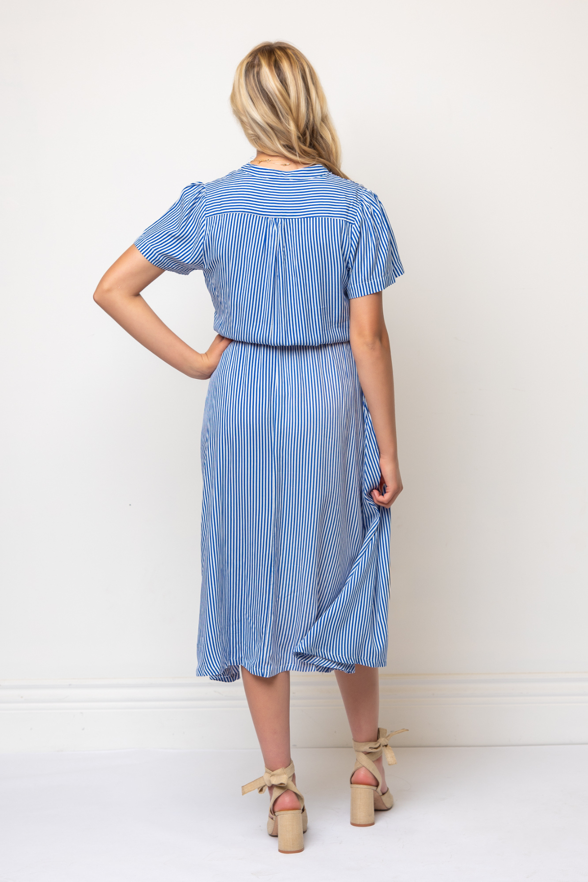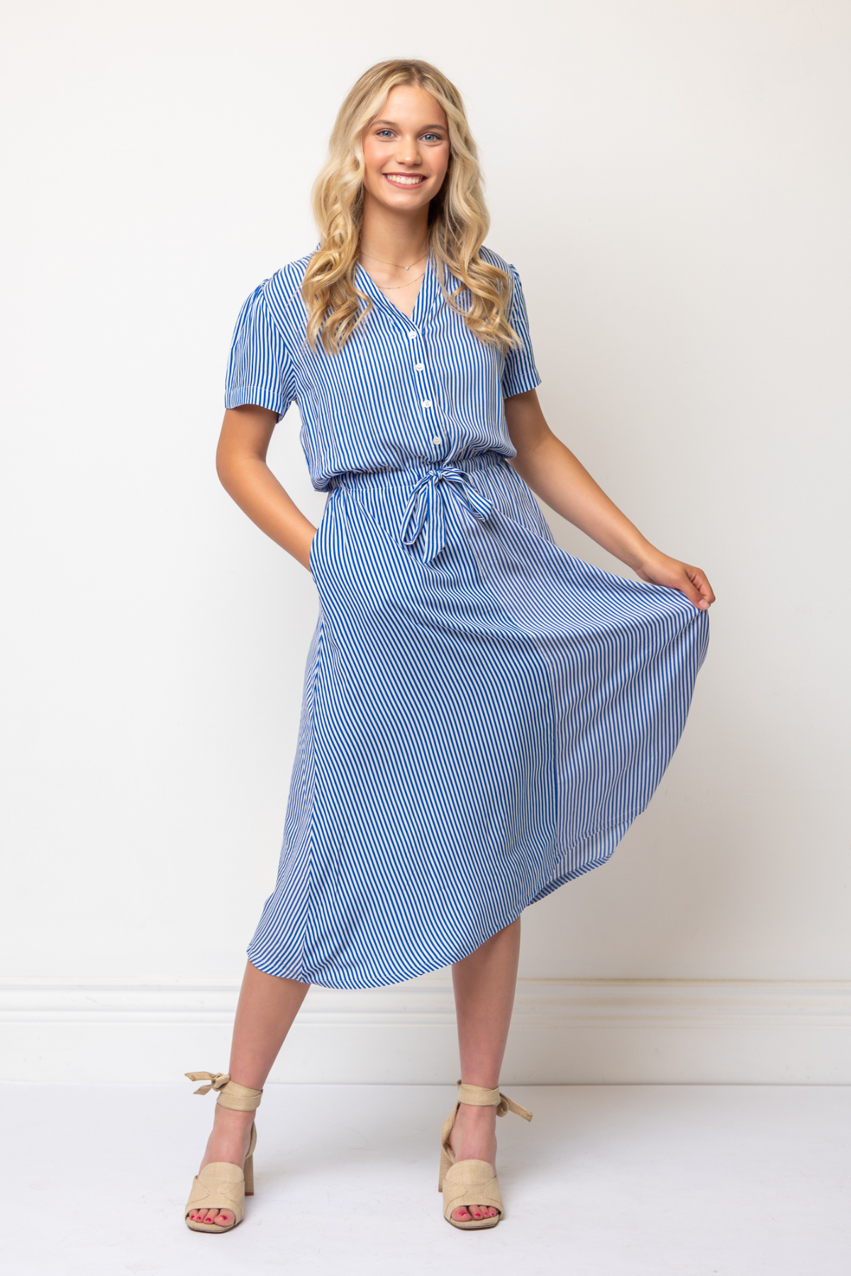 Zelie Shirt Dress in Blue & White Contrast Stripe